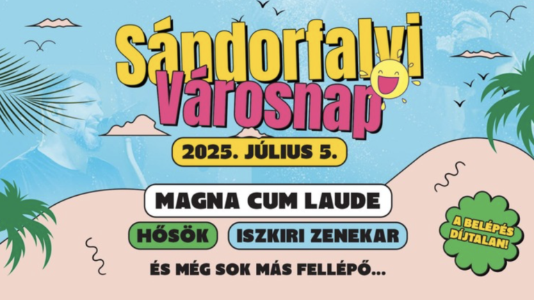 Ez a szombat más lesz, mint a többi: Sándorfalván, alig pár percre Szegedtől egy igazi családi fesztivál vár! Július 5-én gyerekprogramok, koncertek és hajnalig tartó buli a Pallavicini Kastélykertben – a belépés ingyenes, az élmény garantált! A tavalyi nagy siker után idén sem marad el a nyár egyik legvidámabb napja Sándorfalván, Szegedtől egy karnyújtásnyira. Július … Bővebben: Sándorfalva felrobbantja a nyarat: július 5-én jön a Városnap, ahol a Hősök és a Magna Cum Laude is színpadra lép! A rendezvény teljesen ingyenes