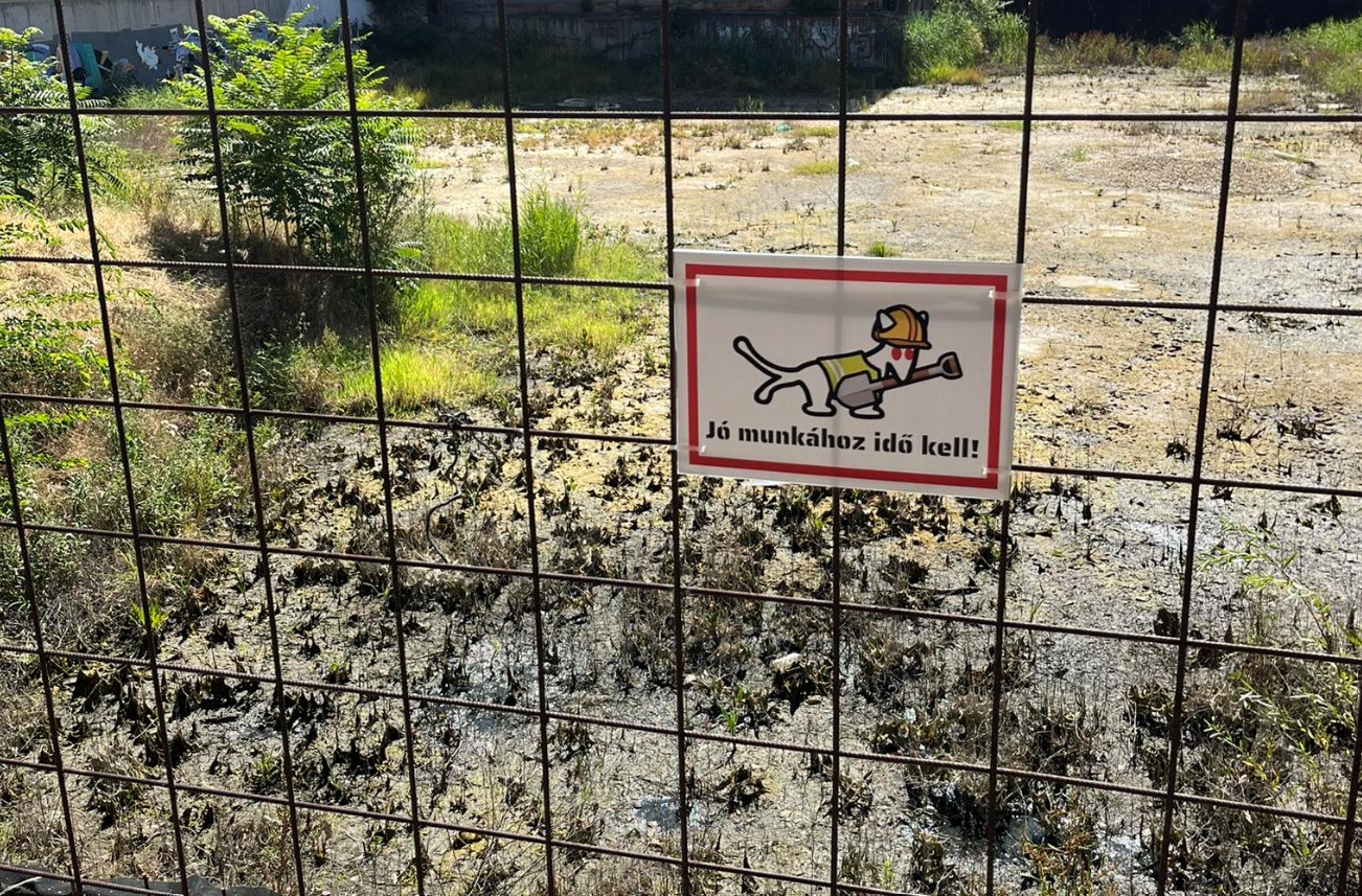 “A klímaváltozás megérkezett, kiszáradt a Centrum-gödör” – írta egy tag szerdán az egyik szegedi csoportban, ahova egy fotót is feltöltött, melyen jól látszódik, hogy az MKKP Szeged is poénosra vette városunk egyik szégyenfoltjának ügyét, ugyanis megjelent egy tábla a kerítésen “jó munkához idő kell” felirattal.