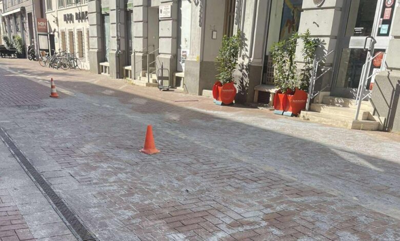 Estek-keltek az emberek kedden a Kölcsey utcában, miután az egyik vendéglátóipari egységtől nagy mennyiségű használt étolaj került a járdára.
