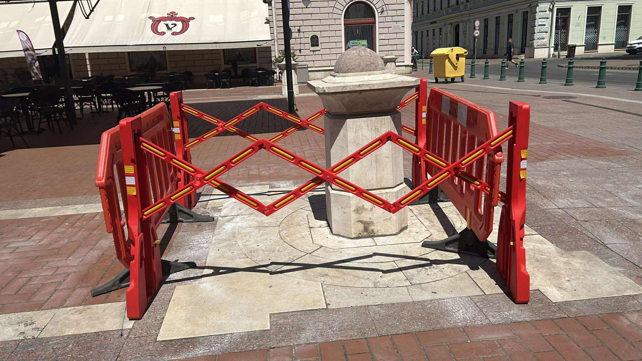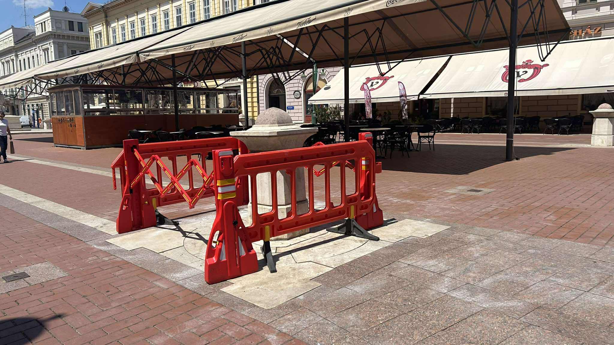 Mint megírtuk, kedd reggelre két oszlop is kidőlt Millenniumi Díszkútnál a Klauzál téren. Az egyik teljesen felborult a cukrászdánál, míg a másik csak megdőlt. Utóbbit, a Kárász utca felől már korábban körbekerítették piros kordonnal, míg a cukrászdánál lévőt kedden dél körül. Friss hír a témában, hogy pénteken a szakemberek is megjelentek a helyszínen és megjavították, majd visszahelyezték a helyükre a kidőlt oszlopokat.