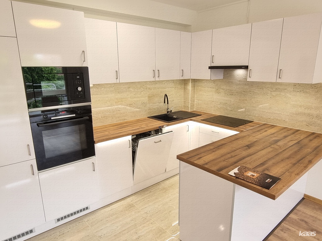 Elsőként egy lélegzetelállító, amerikai konyhás panellakással indítunk, ami beépített gépekkel, köztük