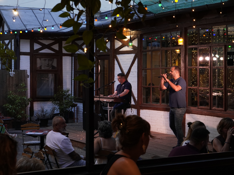 A Napfény Műterem mediterrán terasza tökéletes helyszínt biztosított a Docpiano Band koncertjéhez, ahol a vendégek élvezhették a zenét, miközben finom ételeket és italokat fogyasztottak. A terasz hangulata, a zöld növények és a mediterrán stílusú dekoráció hozzájárultak ahhoz, hogy a vendégek egy különleges élményben részesüljenek.