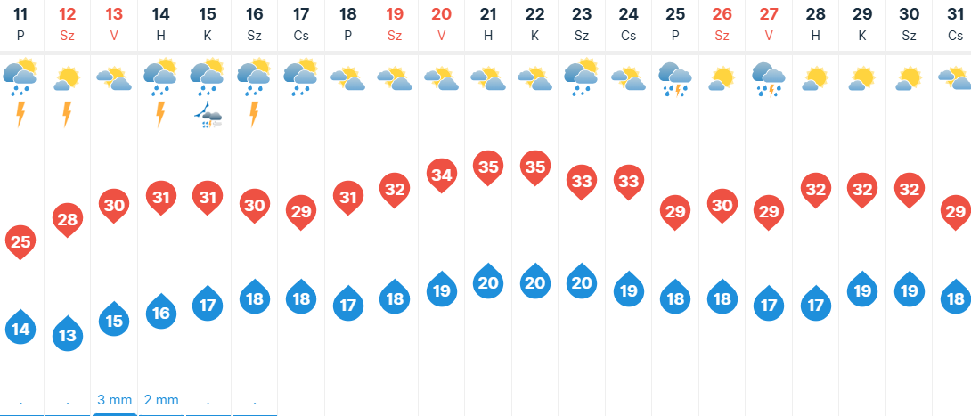 Szombaton a napsütést időnként gomolyfelhők zavarják meg, és helyenként futó záporok, zivatarok kialakulhatnak. Olykor élénk lesz a délnyugati szél. Délutánra 23 és 28 fok közé melegszik a levegő hőmérséklete.