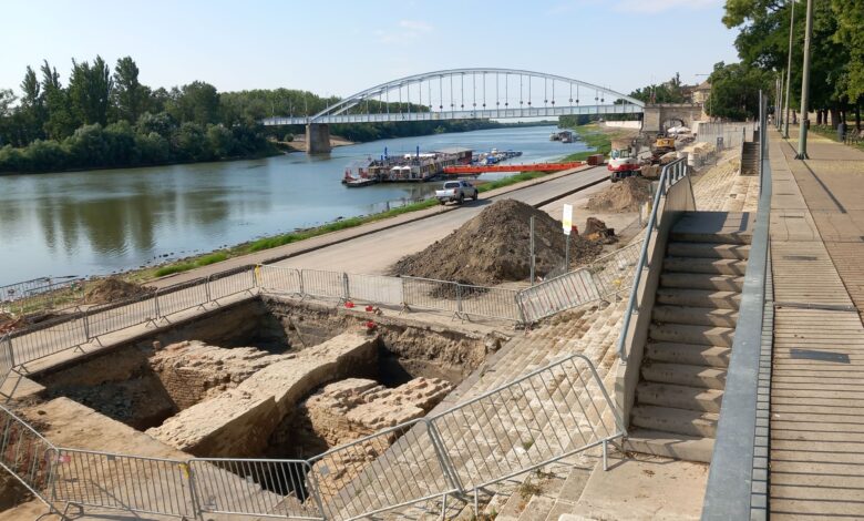 A szegedi rakpart felújítása a városi önkormányzat hosszú évek óta tervezés alatt lévő projektje. A rekonstrukció tervei elkészültek, a munkálatokat úgy időzítették, hogy minél kevesebb forgalmi problémát okozzanak a városban. A héten új fázisához érkezett a felújítás, a régészek jelenleg a vízibástya feltárásán dolgoznak az aszfalt területén, itt vélhetően a szegedi vár déli falát találják majd – tudatta Molnár Csilla. A régészeti ásatások mellett a közműépítés is zajlik az úton, az idei felújítások során a közműveket több mint 300 méteres szakaszon cserélik ki.