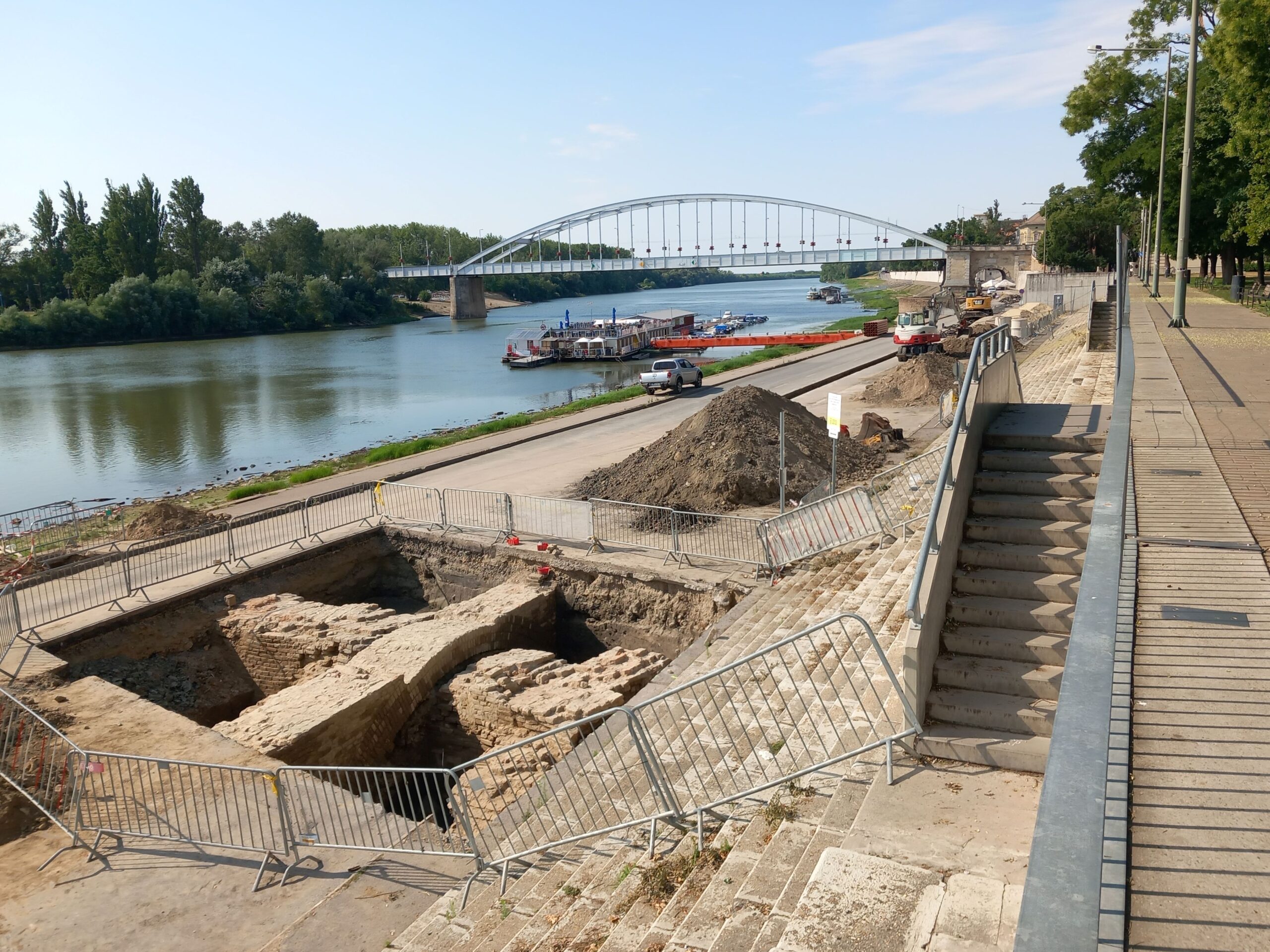 Mint arról korábban beszámoltunk, júliustól folytatódott a Huszár Mátyás rakpart felújítása Szegeden, az idei munkálatok folyamán a közműveket cserélik ki több mint 300 méteres szakaszon. A régészeti ásatások során elsőként a szegedi vár északi fala, valamint a szegedi nagy árvíz utáni első partfala bukkant elő. A régészek jelenleg a vízibástya feltárásán dolgoznak, emellett a közműépítés is zajlik a rakparton – tudatta a közösségi médiában Nagy Sándor, városfejlesztési alpolgármester. Csapatunk kedden délelőtt vetett egy pillantást a Huszár Mátyás rakpartra, mutatjuk, hol tartanak a munkálatok!