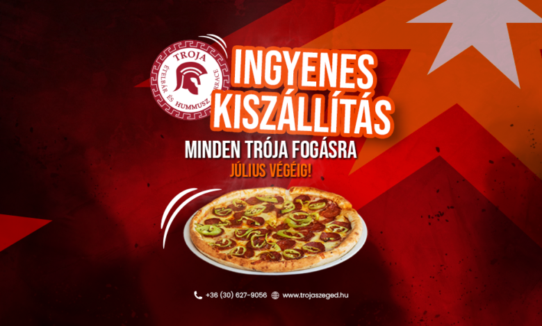 Nyári ajándékkal kedveskedik a mediterrán ételek szerelmeseinek a Trója Ételbár, akik mától ingyenesen szállítanak Szegeden, amennyiben 4.990 Ft felett vásárolsz tőlük. A július 16 és 31. között zajló kedvezménynek köszönhetően a csomagolásért sem kell fizetni, tényleg csak annyi dolgod van, hogy: