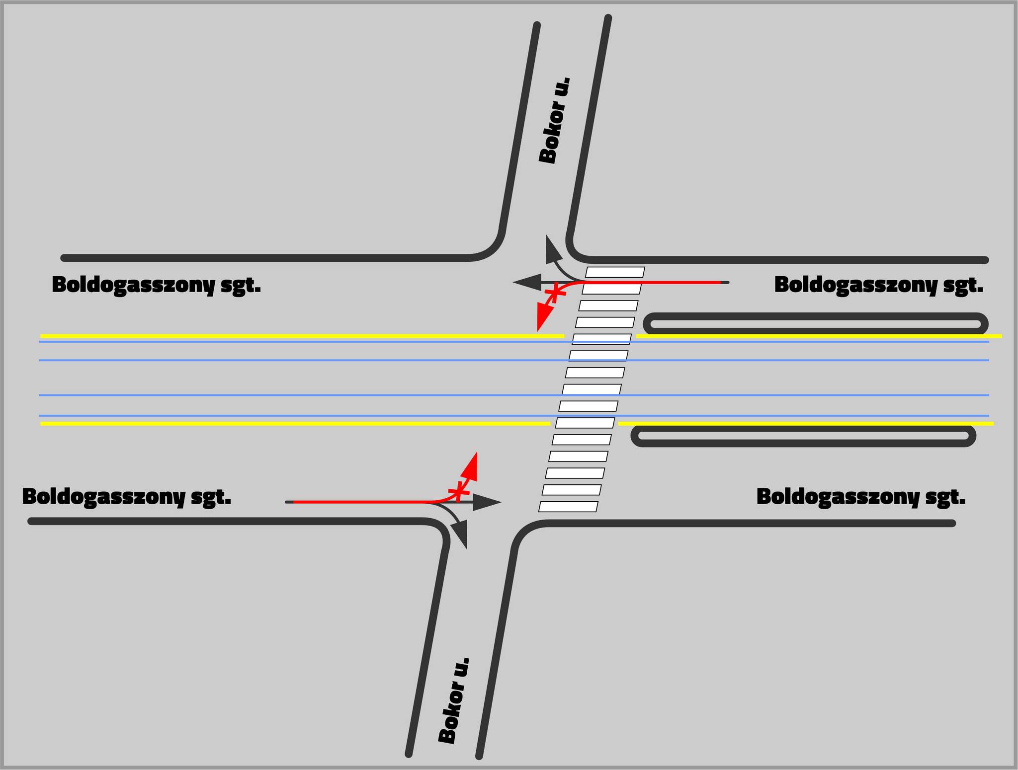 Módosul a forgalmi rend a Boldogasszony sugárút és a Bokor utca, valamint a Liliom utca kereszteződésénél. Az SZKT szerint azért szükségesek a módosítások, mivel ezeken a csomópontokon túl sok volt a baleset.