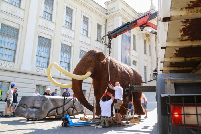 “Csütörtökön megérkezett a speciális emelvény a kinti mamutunk számára, melyet a szakemberek be is emeltek a talapzatra” – írja a Móra Ferenc Múzeum. “Ezzel mindegyik szereplő elfoglalta a helyét a kiállításon – benn is, kinn is!”