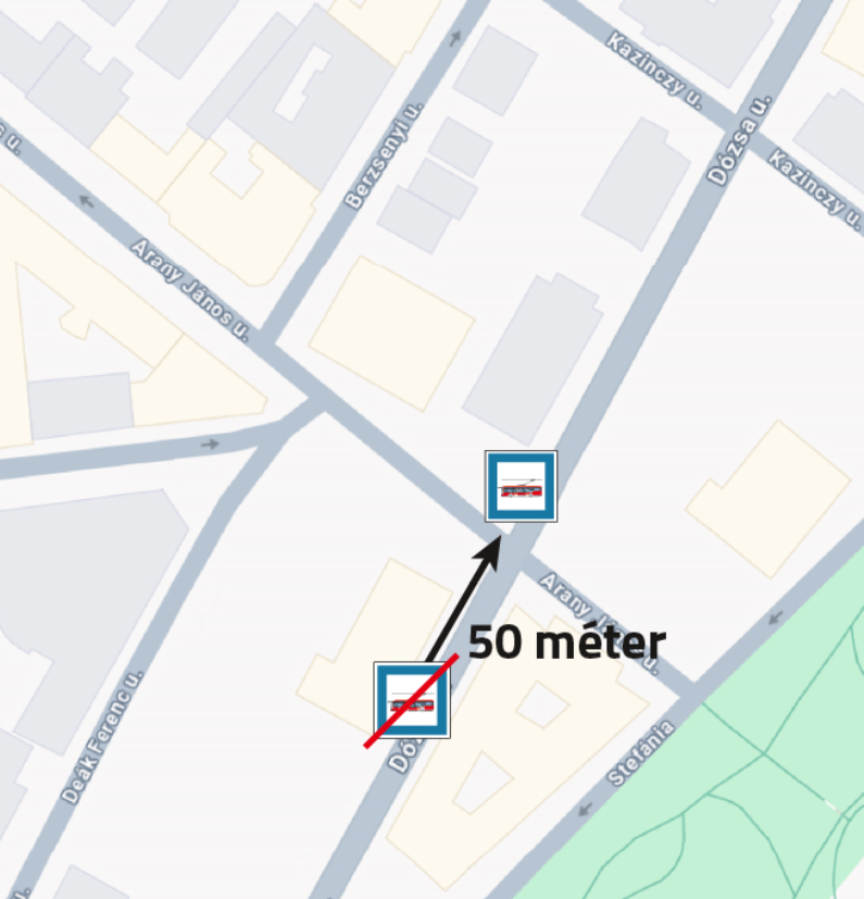 Szerdán áthelyezik a Széchenyi tér irányú Dózsa utcai megállóhelyet Szegeden. Mint megtudtuk, járdaburkolat javítási munkálatokba kezdenek a helyszínen, a megállót pedig kb. 50 méterrel arrébb helyezik át a Tisza Lajos körút irányába, a volt parkolóház felé.