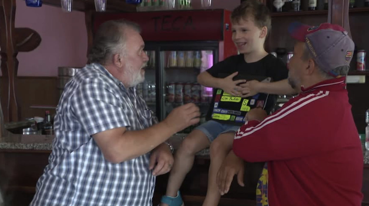 “Aztán megérkeztünk Pajkaszegre, vagyis a Mi kis falunk forgatási helyszínére. Borzasztóan kedvesen fogadta mindenki Gerit. Régen láttunk már ennyi mosolygós arcot magunk körül! Geri kapott egy fülest és élőben, a kamera mögül is megnézhettük, ahogy Hevér Gábor és Csuja Imre előadta a szerepét! Nagyon nagy élmény volt Gerinek, mindenkinek volt hozzá egy kedves szava, illetve türelmesen válaszolgattak Geri minden kérdésére (és valljuk meg egy ilyen izgalmas helyszínen melyik 5 évesnek ne lenne milliónyi kérdés. Gerinek a legérdekesebbek a kamerák voltak, és persze Gábor, aki Árpi, de akinek az igazi neve Gábor!”