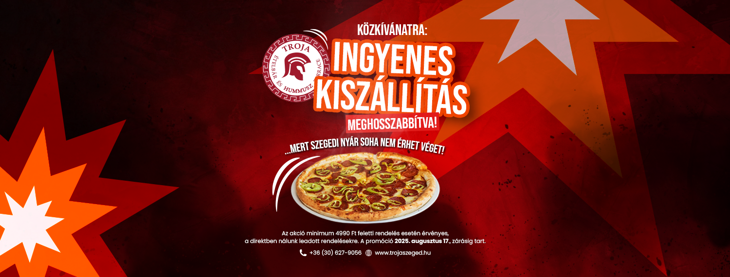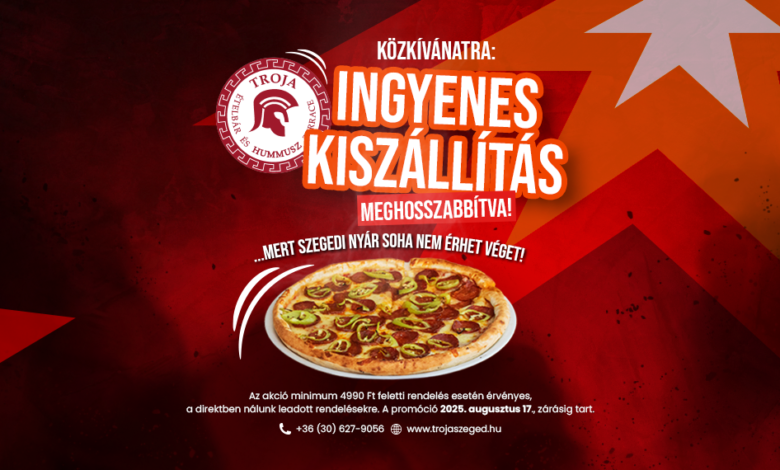 “A szegedi nyár soha nem érhet véget” – közölte a Kölcsey utcai Trója Ételbár a legendás Soho Party slágerre hajazva péntek reggel, miután bejelentették, hogy a júliusban óriási sikert aratott ingyenes szállítás akciót meghosszabbítják augusztus 17-ig. A világ igazán nagyszerű dolgai mindig egyszerűségükben nagyszerűek, pont, mint a Trója aktuális akciója: