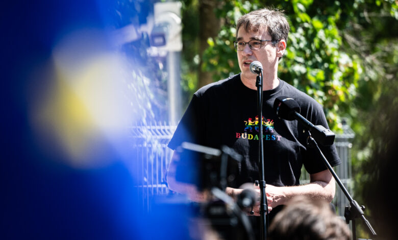 A tömeg közben több százfősre duzzadt, majd végül megjelent Karácsony Gergely is, akit tapsvihar fogadott. Dobrev Klárával puszival üdvözölték egymást, majd felment a felállított színpadra. „Nekem személyesen is jól esik, hogy eljöttetek, de mindannyian tudjuk, hogy ez a történet nem rólam szól” – kezdte a főpolgármester, aki szerint Budapest megmutatta, hogy a szeretetet nem lehet betiltani, így megbüntetni sem. “Remélem hamarosan ismét találkozunk, és remélem szabadlábon távozhatok” – tette hozzá viccesen, majd bement a nyomozó irodába.
