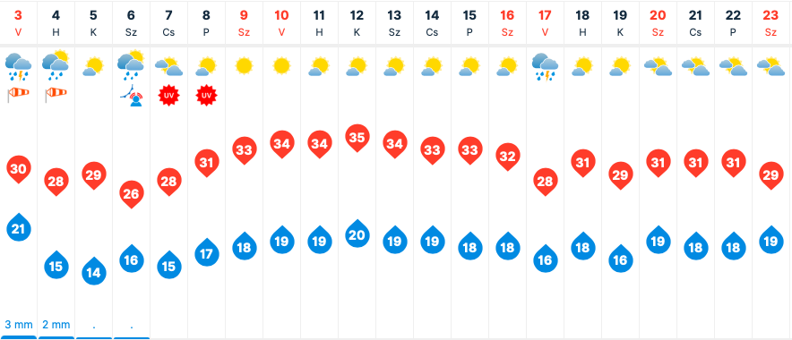 Vasárnap zivatarokkal érkezik egy kis lehűlés Szegedre. Légmozgásra is kell számítani, a legmagasabb hőmérséklet 30 fok körül alakulhat.