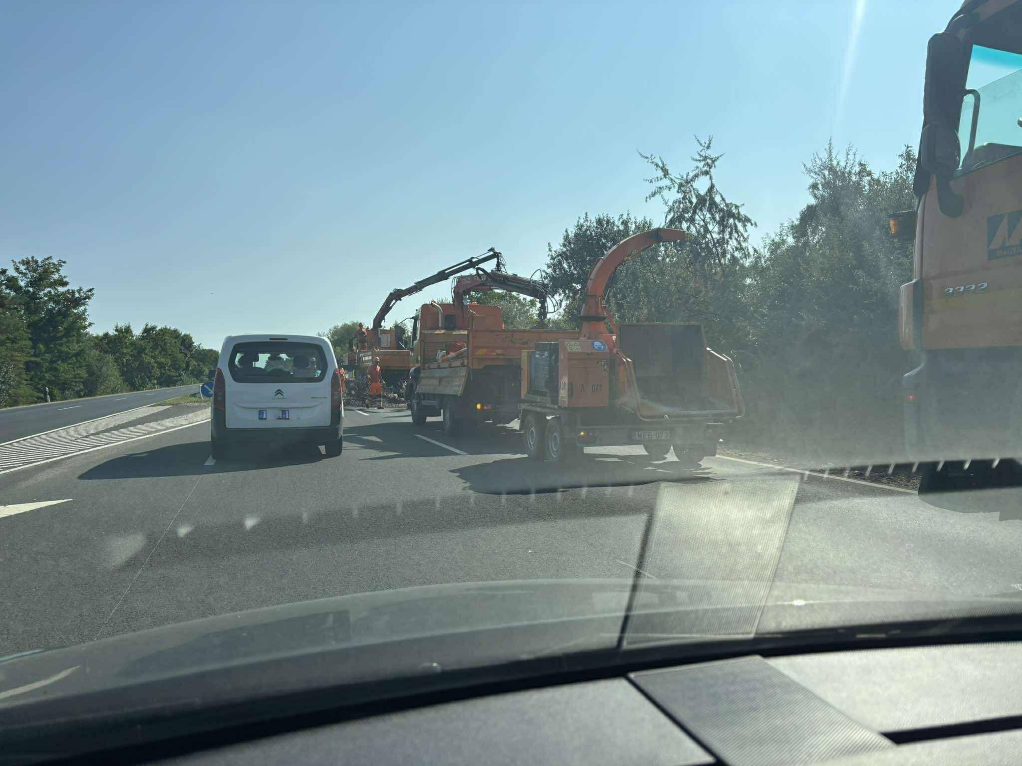 A kidőlt fa belóg a belső sávba is, ahol több munkás tartózkodik, így közlekedjetek óvatosan, ha arra jártok! 5-10 perces torlódás alakult ki a helyszínen! Köszönjük az infót és a fotókat olvasónknak!