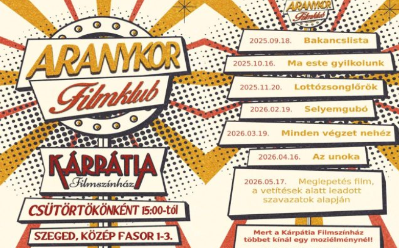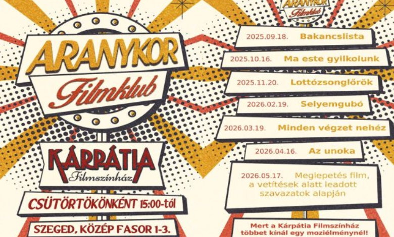 A szegedi Délvidék Ház egy különleges kulturális kezdeményezéssel készül az őszi szezonra: a Kárpátia Filmszínház egyedülálló mozibérletet indít nyugdíjasoknak, hat klasszikus filmmel és egy hetedik, közönség által választott meglepetésvetítéssel. A Szeged365.hu korábban már írt arról, hogyan vált a Délvidék Ház egyre fontosabb színtérré a város életében, most pedig újabb generáció kap lehetőséget arra, hogy rendszeresen kikapcsolódhasson – barátságos környezetben, kényelmes székek között, egy csésze tea és egy tál popcorn társaságában.