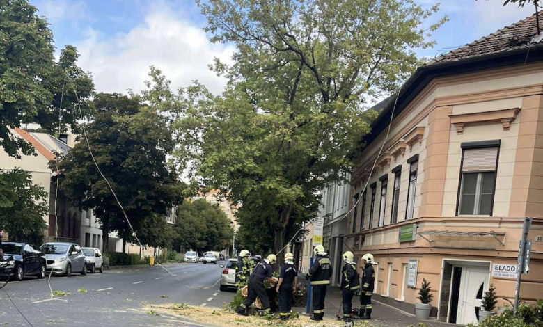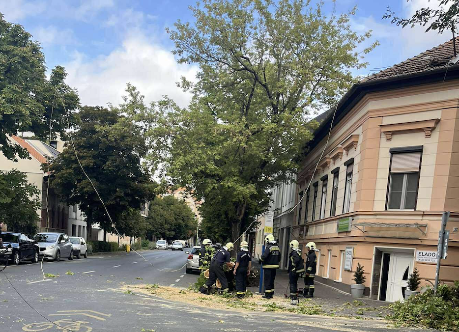 A Szentháromság utcában, – ahol leszakadt vezetékhez és kidőlt fához riasztották őket – nem alakult ki torlódás, viszont a Párizsi körúton hosszú kocsisor állt össze. Olvasónk egy videót is küldött a helyszínről, amit a fedélzeti kamerájával rögzített.