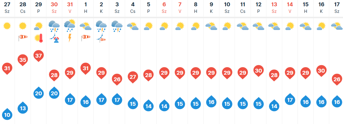 Csütörtökön szeles, napos időre van kilátás, legfeljebb fátyolfelhők sodródhatnak fölénk nyugat, délnyugat felől, csapadék továbbra sem valószínű. Sokfelé élénk, erős, nyugaton, északnyugaton viharos lökések kísérhetik a délies szelet. Többfelé felfrissül hajnalra a levegő, majd délután 30-36 fokot mérhetünk Szegeden.