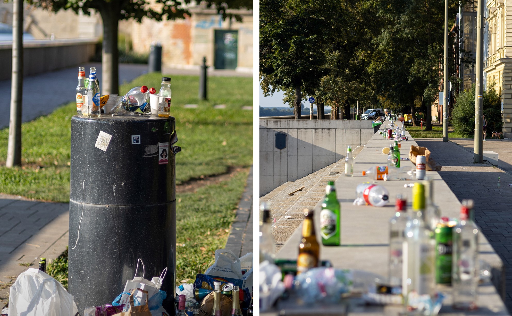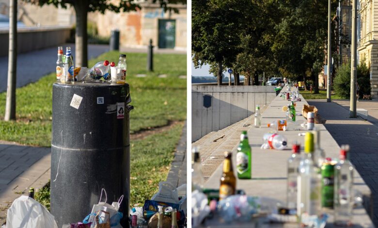 “Nem nagy erőfeszítés pár lépést megtenni a legközelebbi hulladékgyűjtő edényig” – extrém terhelés éri a város több pontját is a SZIN alatt, az SZKHT munkatársai minden reggel azzal kezdenek, hogy eltakarítják a hulladékot