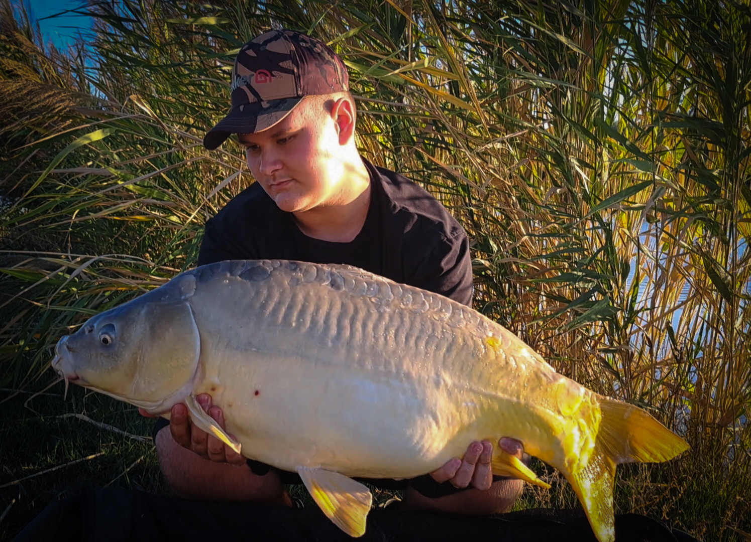 “Visszaengedés után, amikor álltam fel a párás fű miatt elcsúsztam, és beleestem a tóba térdig, közben felszakadt a kézfejem, majd siettem hamar fertőtleníteni. Számomra nagy tanulság volt, hogy a vizes fű sportcipőben veszélyes tud lenni” – írta Tamás. Mint megtudtuk, ezek után már csak napfelkeltekor indult újra a víznek, és nem eredménytelenül! Ezután horogra akadt egy 10 kilós, majd több, 4-8 kilogramm közötti ponty, sőt, egy gyönyörű, 2 kilós koi ponty is. Miután Tamás felpakolt egy 30 mm-es nagyságú bojlit, már nem is fogott 8 kilogramm alatt semmit, csak a nagyobb halak jöttek. Végszónak kiemelte, hogy a 42 óra alatt összesen 350 kilogrammnyi halat fogtak édesapjával, a legnagyobb ezek közül pedig 12,6 kilogramm volt! Gratulálunk!
