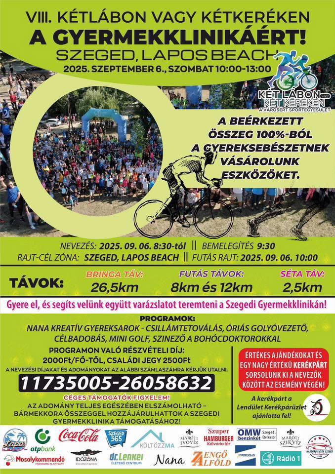 Rekordra készülnek a Laposon: már 9 millió forintnyi adománynál jár a Két Lábon vagy Két Keréken a Gyermekklinikáért, pedig még el sem indul a nevezés