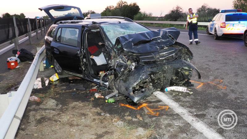 Meghalt egy német állampolgár az M43-as autópályán szombat este történt balesetben. A sztráda Budapest felé vezető oldalán, az 1-es kilométernél több jármű ütközött, a karambolnak több román sérültje is van – közölte a Csongrád-Csanád Vármegyei Rendőr-főkapitányság sajtóreferense vasárnap délelőtt az MTI-vel. Csordás Zsanett főhadnagy elmondta, hogy szombaton 18 óra körül egy műszaki hibás autó vesztegelt a leállósávban. A járműben egy német állampolgár ült. Segítségnyújtásra megállt mellette a külső sávban egy mikrobusz, amelyet egy román férfi vezetett. Eközben hátulról – figyelmetlenségből – beléjük szaladt egy személygépkocsi, amelyben szintén két román állampolgár ült. Járművük meglökte a mikrobuszt, amely így elütötte a két, a gépjárműből kiszálló sofőröket. A német gépkocsivezető meghalt, a mikrobusz sofőrje súlyos sérülést szenvedett. A román személyautó vezetője könnyebben, utasa súlyosan megsérült – közölte a sajtóreferens.