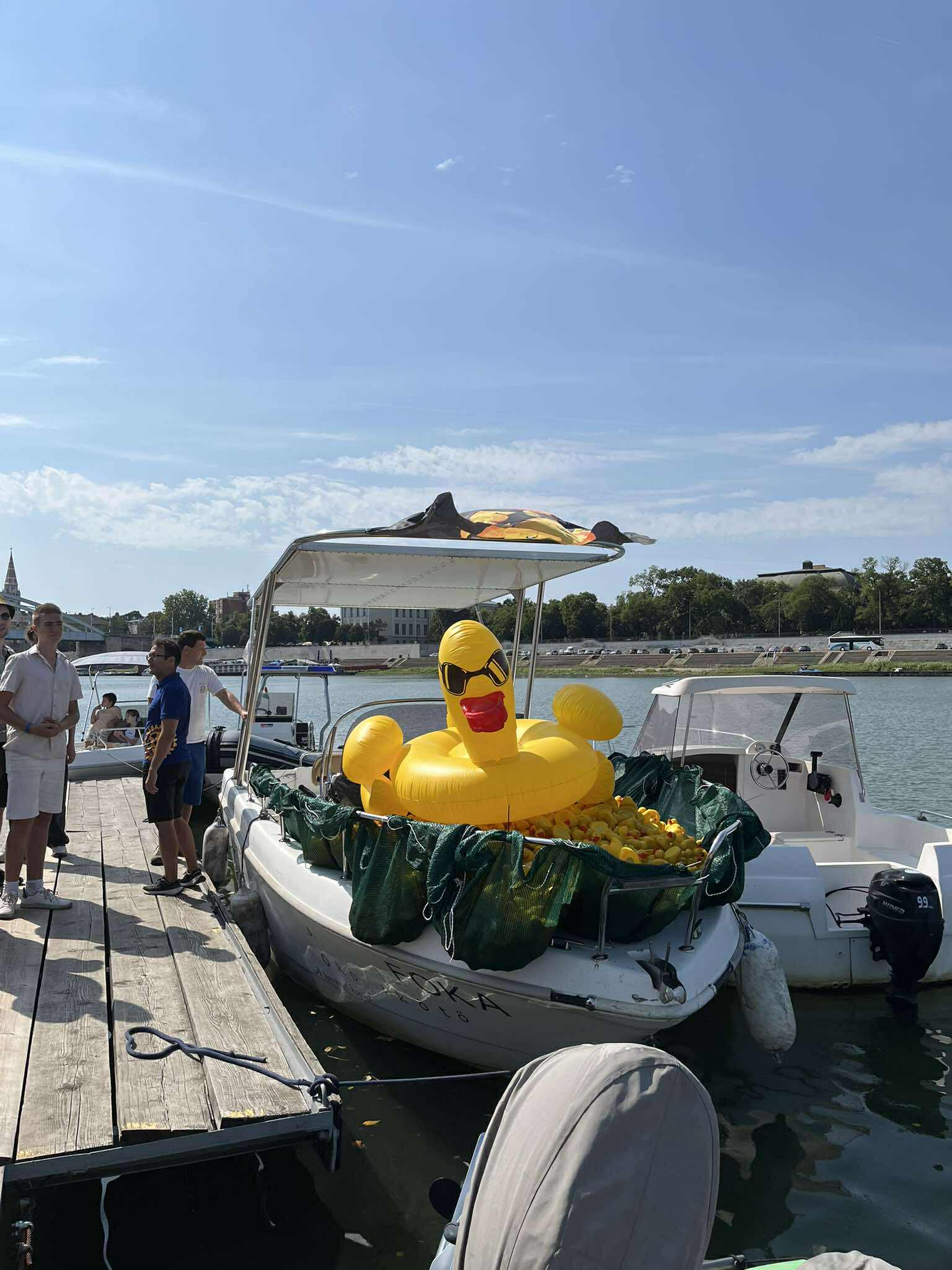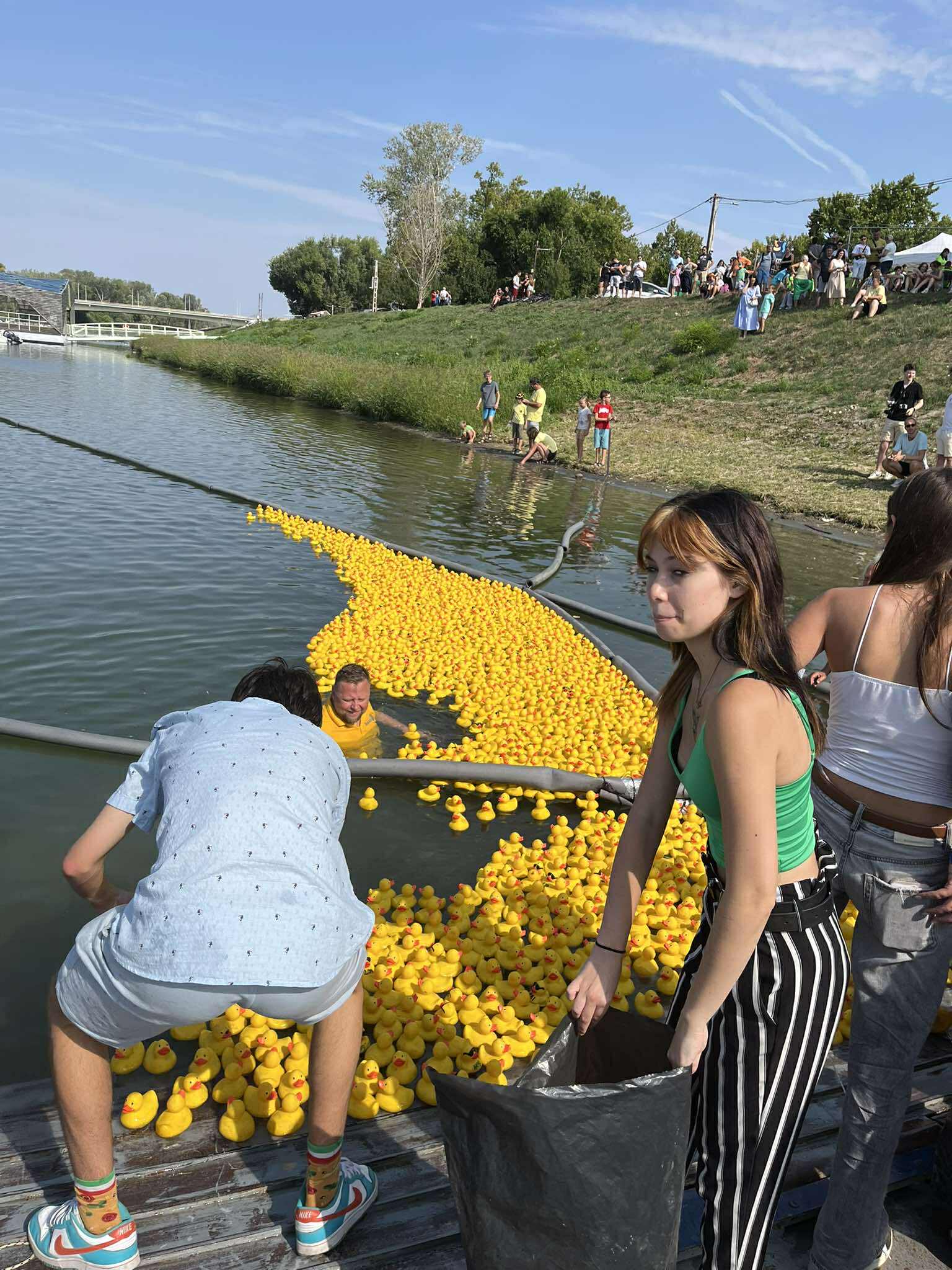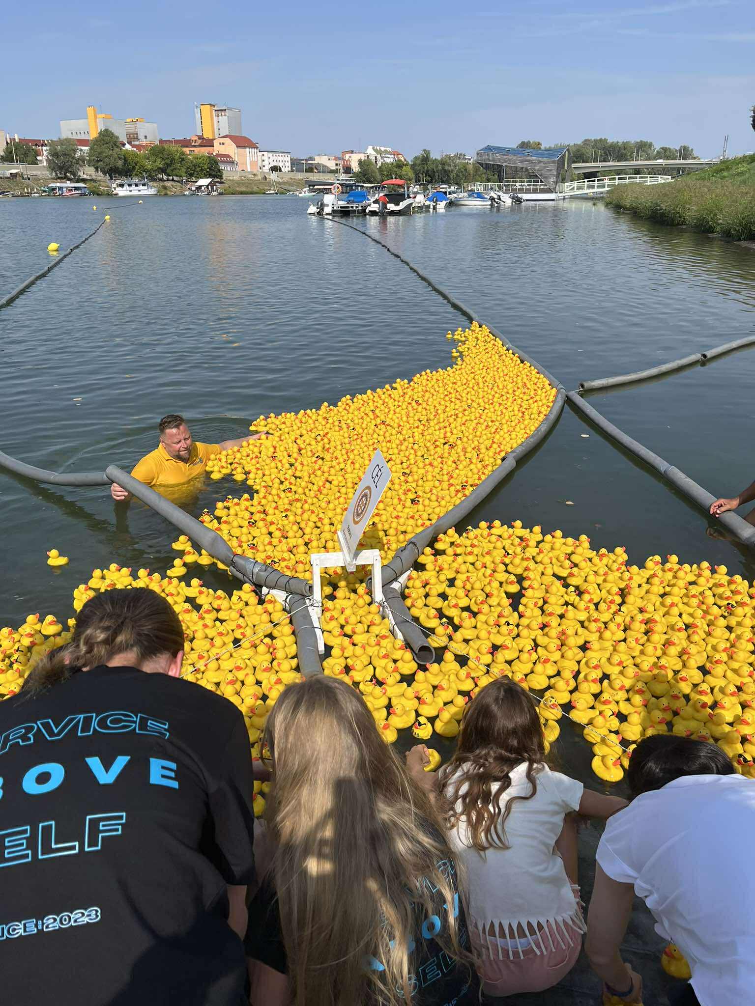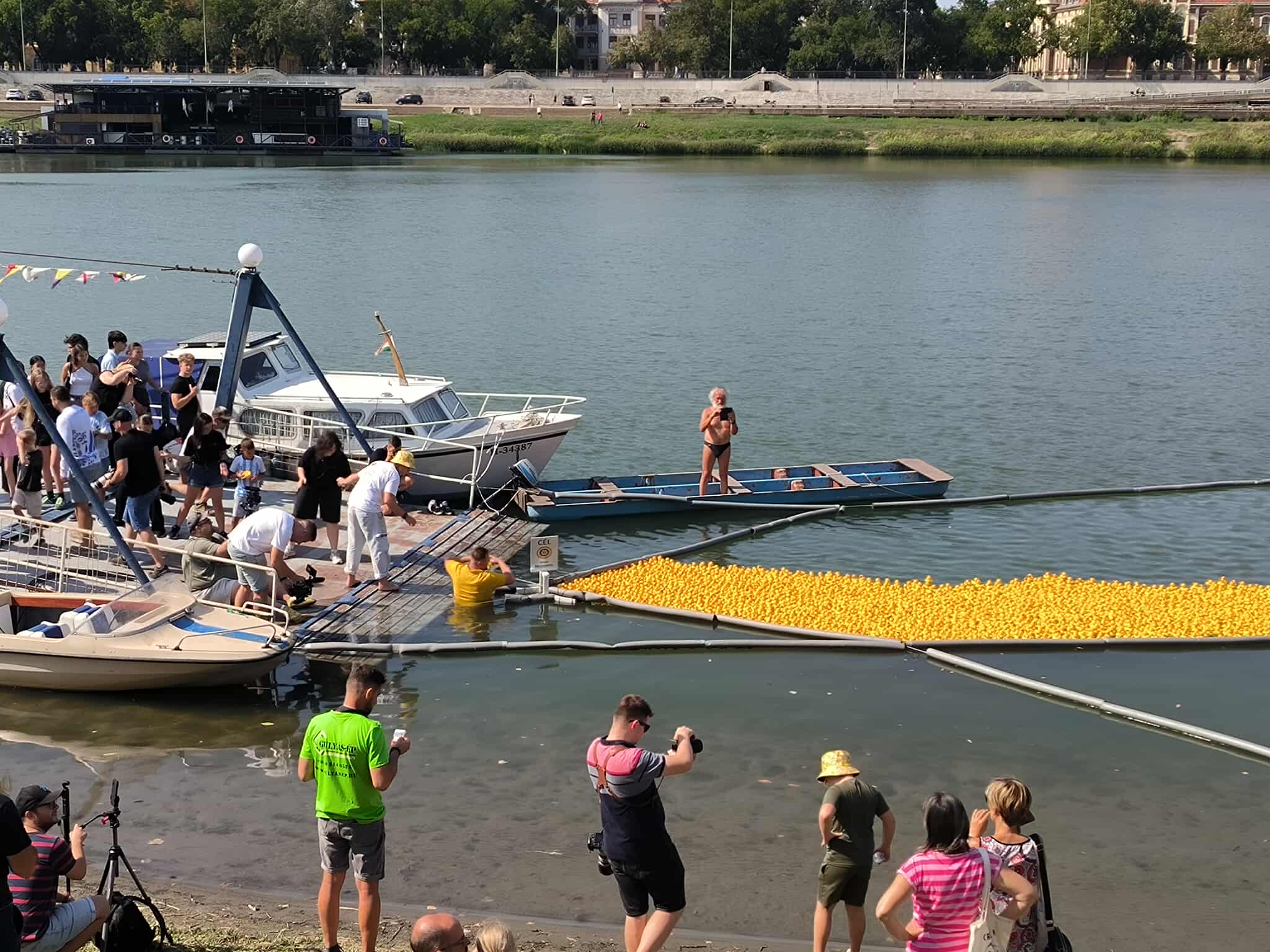 Mint korábban megírtuk, a Rotary Club Szeged Dóm idén jubileumi, 10. alkalommal rendezte meg a már hagyománnyá vált Jótékonysági Gumikacsa Versenyt Szegeden. A különleges évforduló alkalmából az Azera Investments támogatásával ismét 5000 darab sárga színű gumikacsa úszik a szívbeteg gyerekekért a Tiszában. A szervezők a vízre egy fokozatosan szűkülő pályát építettek fel, amelynek végpontján már csak egyetlen gumikacsa tud egyszerre áthaladni. Így alakul ki a végső sorrend!