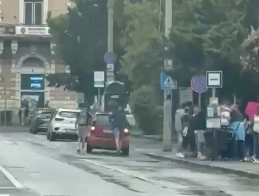 Emberségből jeles: fiatalok segítettek tolni egy lerobbant autót a Széchenyi téren még az eső ellenére is (videóval)