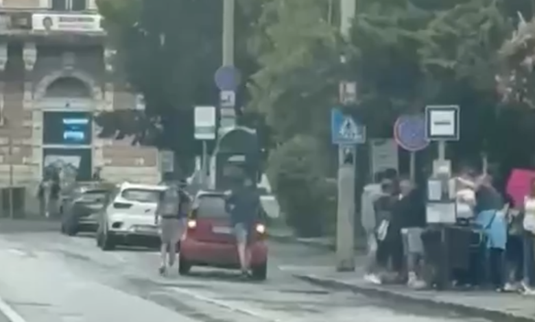 Emberségből jeles: fiatalok segítettek tolni egy lerobbant autót a Széchenyi téren még az eső ellenére is (videóval)