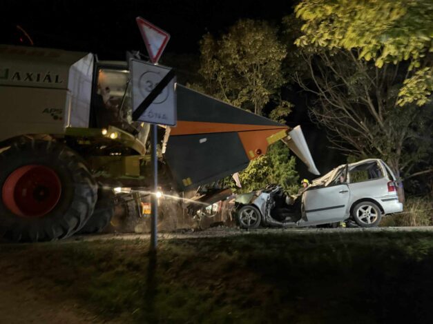 Szegeden, a Kapisztrán úton egy kombájn és egy személyautó ütközött. Az autó vezetője beszorult, akit a tűzoltók feszítővágóval mentettek ki, majd áramtalanították a járművet. A helyszínen komoly mentési munkálatok zajlanak.