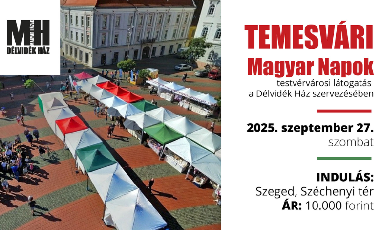 Temesvár szeptember végén újra magyar szóval telik meg – Szeged pedig ott lesz. A Délvidék Ház 2025. szeptember 27-én egynapos kirándulást szervez, hogy közösen vegyünk részt a 10., jubileumi Temesvári Magyar Napok eseményein. A kezdeményezés célja túlmutat egy egyszerű programon: a testvérvárosi kapcsolat megerősítése, és a délvidéki magyarság kulturális küldetésének méltó képviselete is fókuszba kerül.