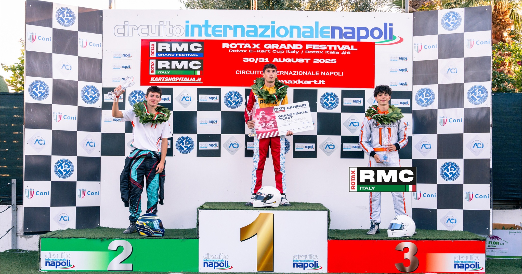 A magyar verseny követő hétvégén, az olaszországi Sarnoba utazott a csapattal, ahol az ROTAX Grand Final elnevezésű nemzetközi versenyen már az elektromos meghajtású E20 kategóriában indult. Az első szabadedzésektől kezdve az élmezőnyben vezetett, folyamatosan fejlődött és az időmérőn mindössze 39 ezreddel maradt le a pole pozícióról. A két selejtező versenyen végig magabiztosan ment, aminek az eredménye kettő győzelem lett. A döntő futamon is vezetett, azonban két spanyol ellenfele végig nyomás alatt tartotta és sajnos három körrel a vége előtt elveszítette az első helyet, és a harmadik lett.