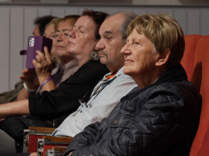 Ahogy elindult a vetítés, a nézőtéren csend lett. A vásznon egy letűnt kor kelt életre: a délvidéki filmpionírok története, az alkotás szabadsága, majd annak megtörése. A képek, a szövegek és a zene nem harsányan, hanem halkan, de annál mélyebben szóltak – az arcokon látszott, hogy ez a film nem engedi el az embert könnyen. A vetítés után kötetlen beszélgetés következett.