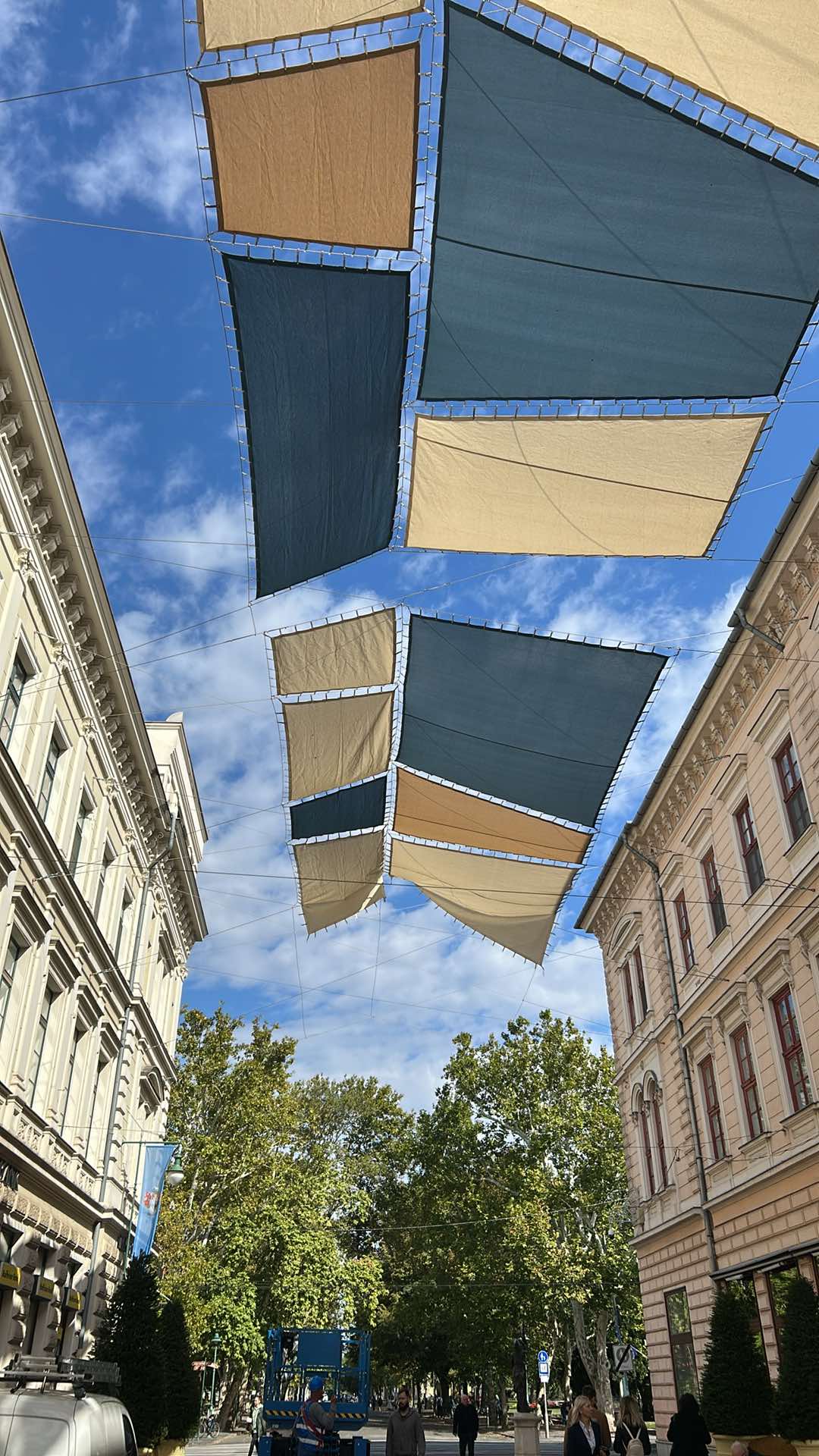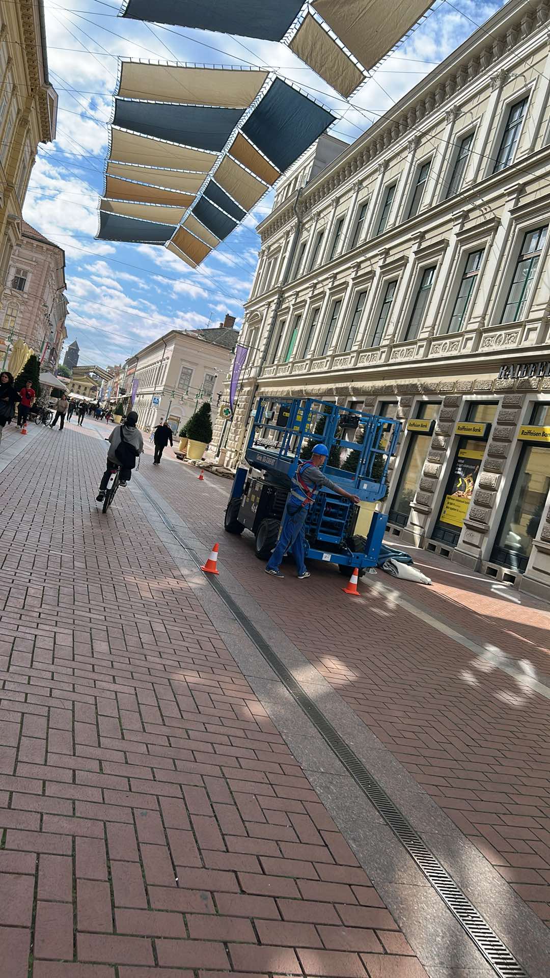 Viszlát, napvitorlák! Elkezdték leszerelni őket a Kárász utcán, hamarosan a karácsonyi fényfüzérek veszik át a helyüket