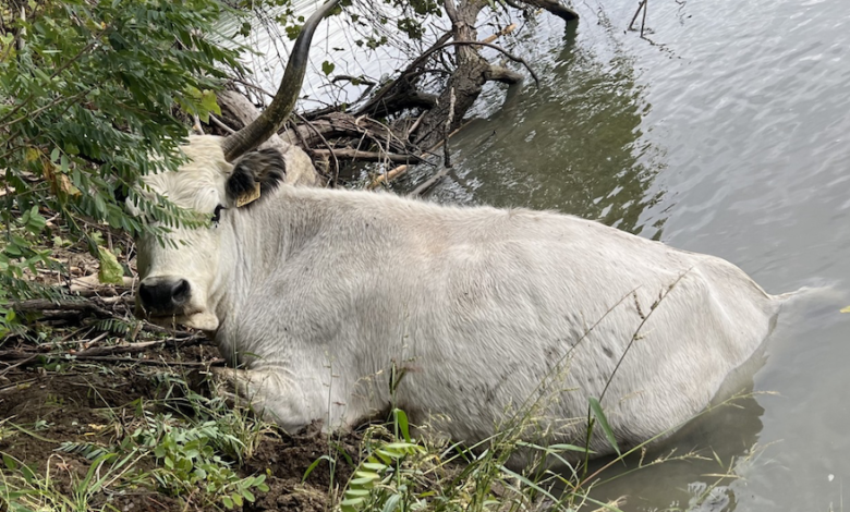 Bajba jutott szürkemarhát mentettek ki a Tiszából a csongrádi tűzoltók (galériával)