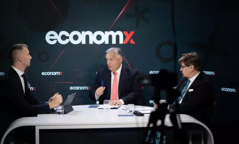 A miniszterelnök a Magyar Kereskedelmi és Iparkamara elnökével, Nagy Elekkel közösen adott interjút az Economx-nak. A miniszterelnök a gazdaság helyzetéről, az új 3 százalékos vállalkozói hitelről, de a KATA jövőjéről és a minimálbér-emelésről is beszélt. Kijelentette, Magyarország nem tervezi bevezetni az eurót, mert szerinte az Európai Unió a szétesés szakaszában van, és nem szabad a jelenleginél szorosabban összekötni az ország sorsát Brüsszellel.