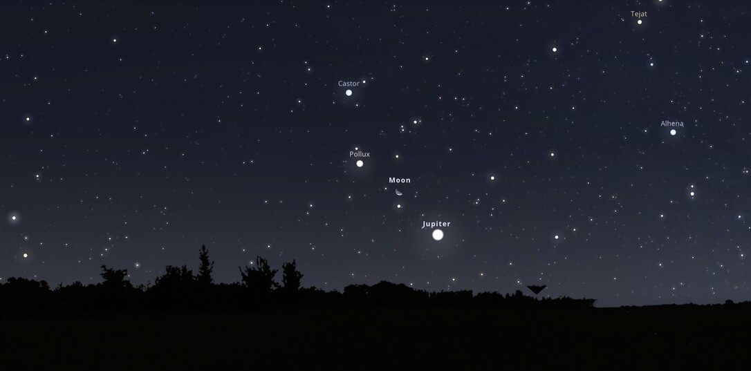 Hétfő éjjel érdemes lesz az eget kémlelni Szegeden: Hold, Jupiter és a Pollux különleges együttállása