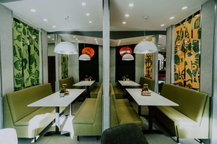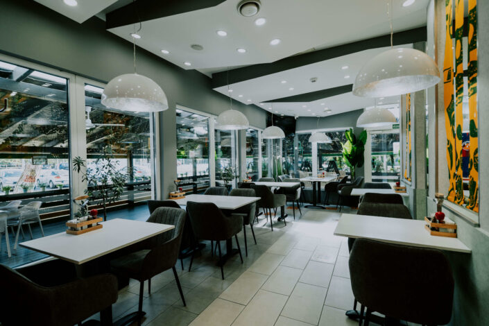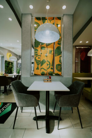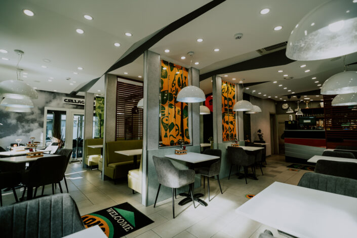 A külső megújulást követően a Pizzamonster Streetfood & Grill belső dizájnja is jelentős ráncfelvarráson esett át az elmúlt időszakban. A kirívó, legfőképpen vibráló színeket alkalmazó enteriőrt felváltotta egy sokkal inkább visszafogott, letisztult belső tér, ami a napokban teljes mértékben el is készült.