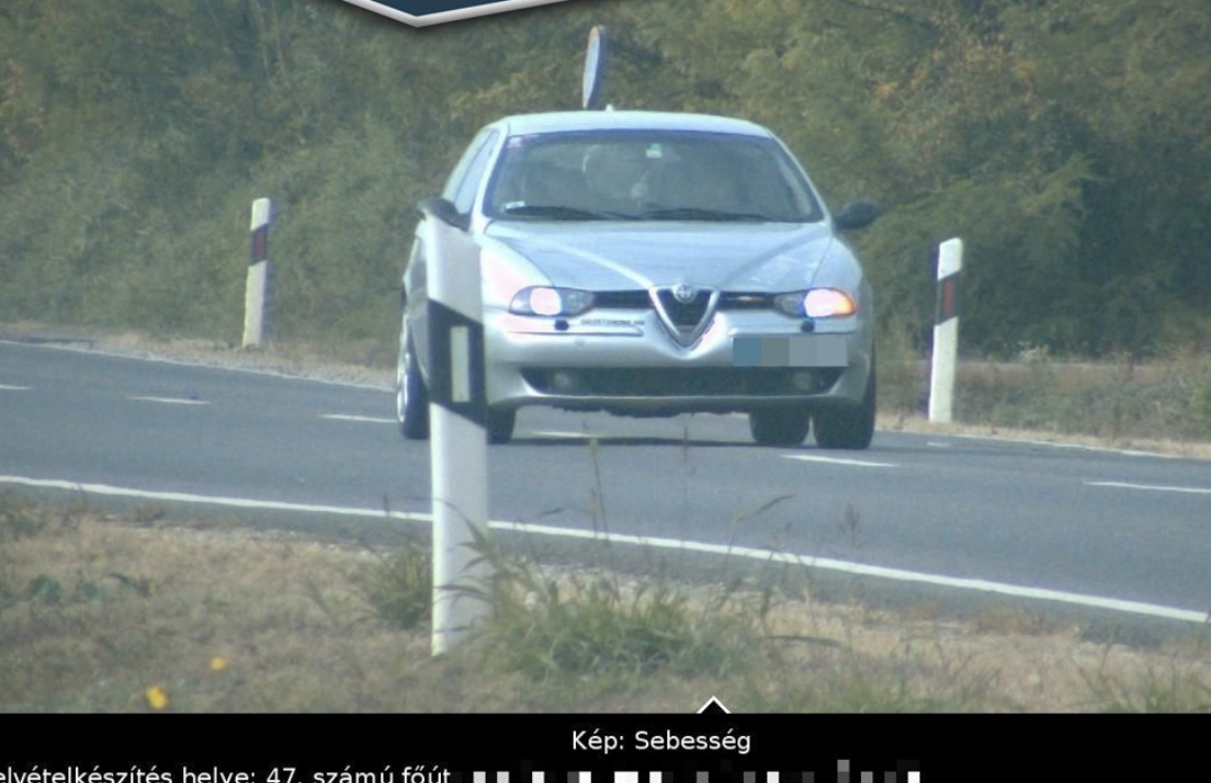 A Csongrád-Csanád vármegyei rendőrség osztotta meg azt a fotót, amin a 181-el repesztő Alfa Romeo látható. A gyorshajtás eredménye 312.000 forintos pénzbírság lett.