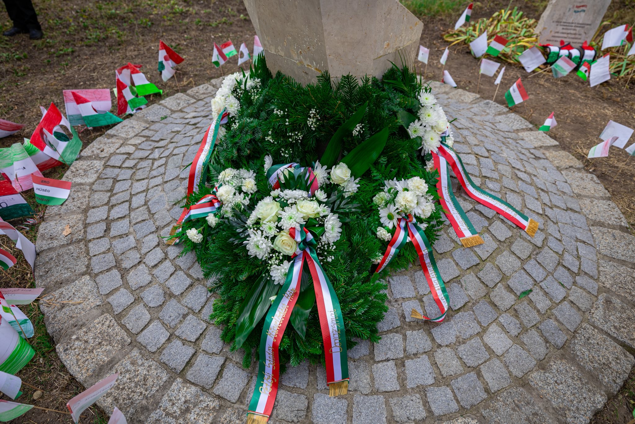 A rendezvény végén a résztvevők közösen helyezték el a koszorúkat a Hősök Ligetében, az emlékműnél, méltóságteljes csendben emlékezve a forradalom hőseire. Ruzsa Roland beszédében a béke, az emberi méltóság és az összefogás fontosságát hangsúlyozta:
