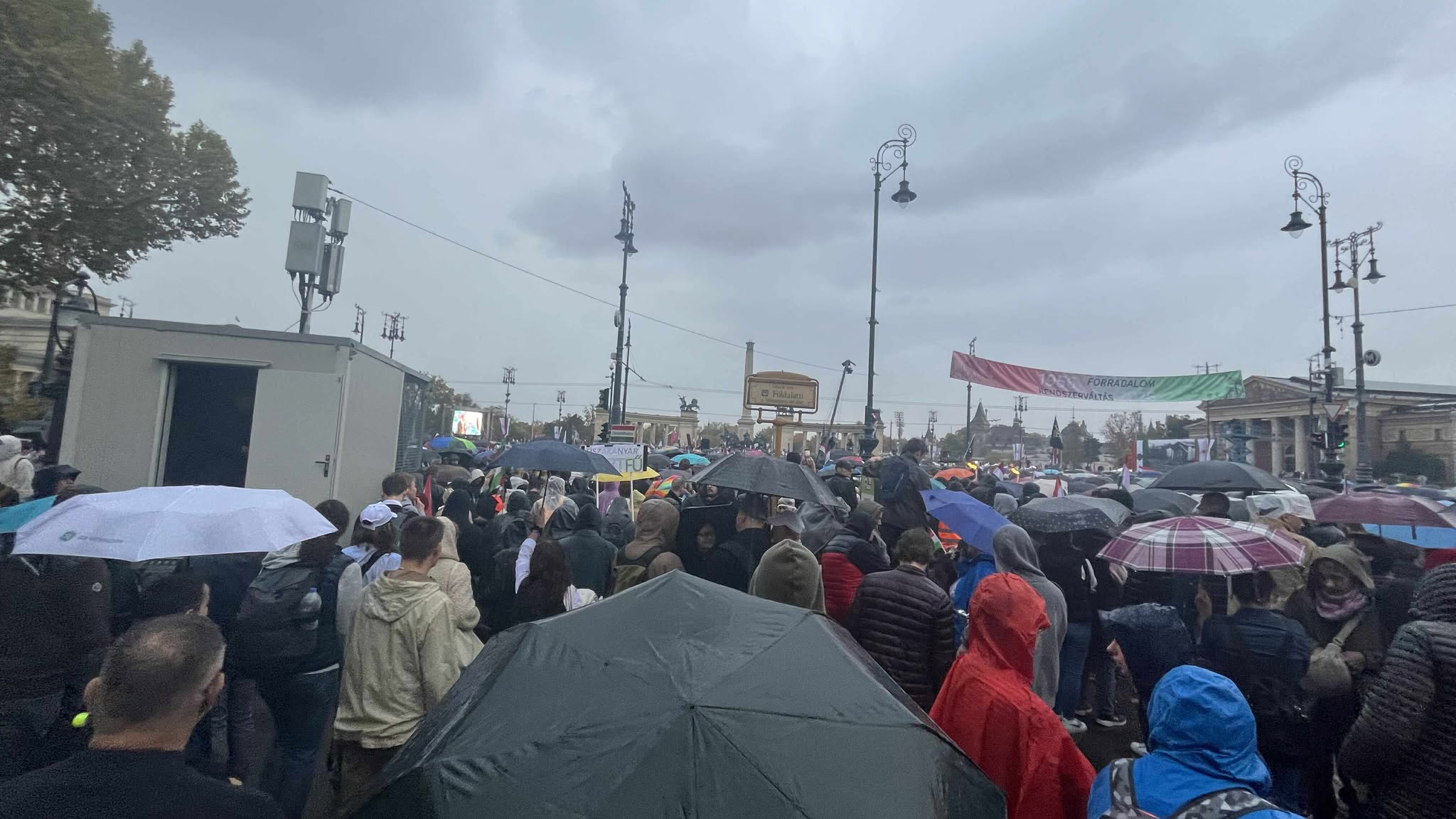 Magyar szerint most a magyar történelem legfényesebb napján gyűltek össze. „Elég volt, vége van, elvtársak!” – kiabálta a mikrofonba először magyarul, majd oroszul a Tisza elnöke. Erre a tömeg azt kezdte skandálni, hogy „ruszkik, haza!”.