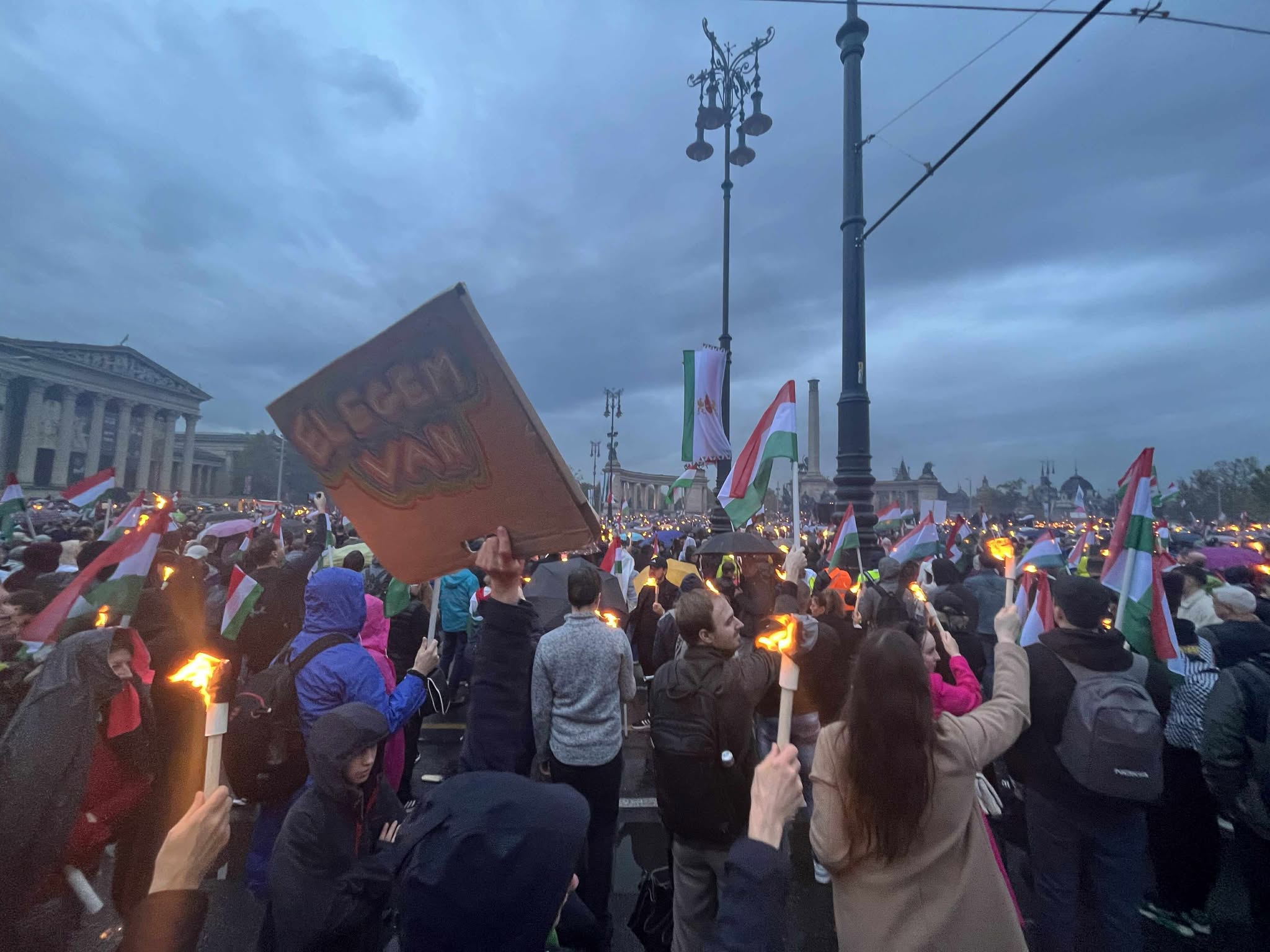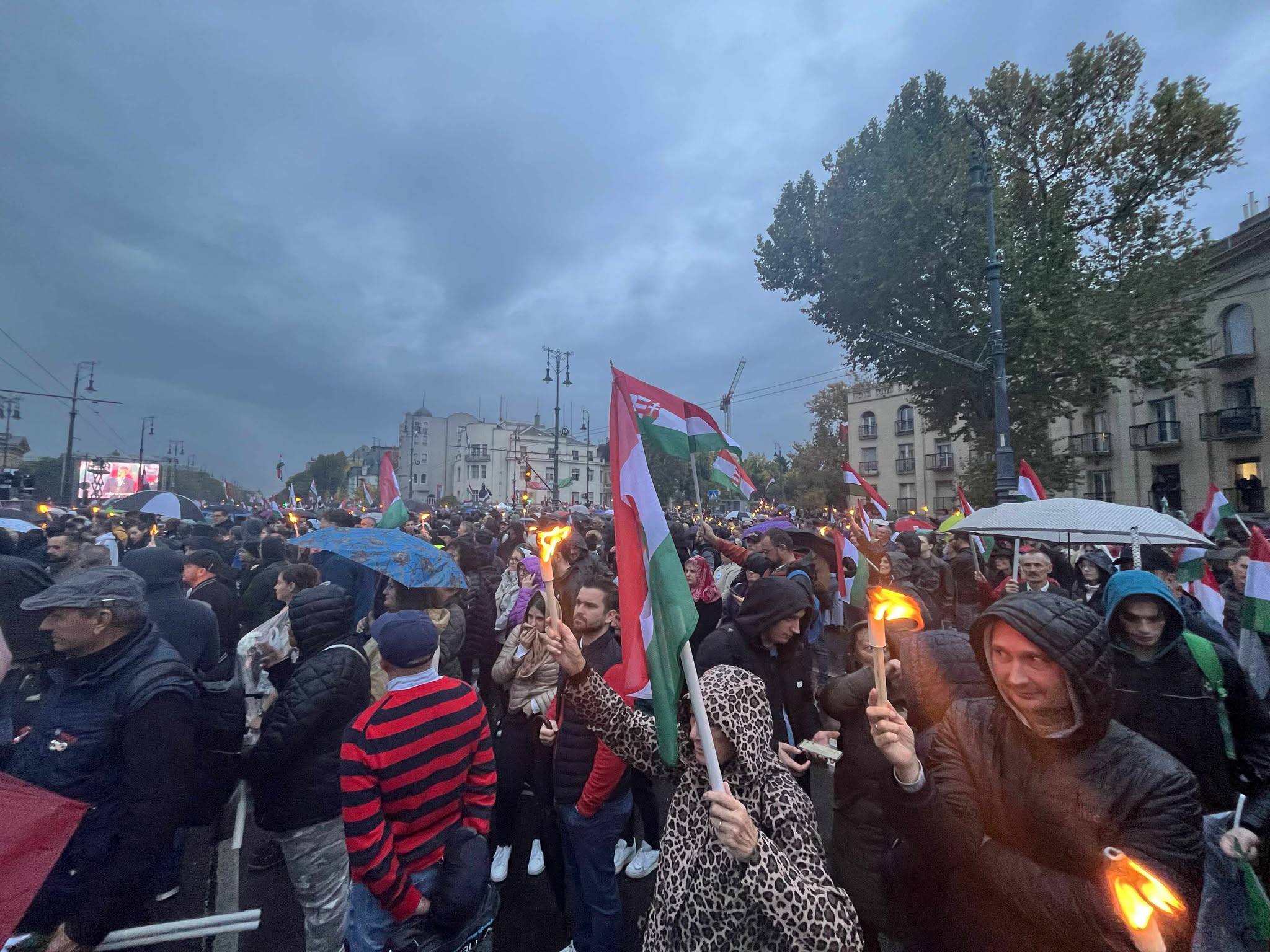 Mint megírtuk, míg a Békemenet résztvevői a budapesti Kossuth téren hallgatták Orbán Viktor beszédét, addig a Magyar Péter által szervezett Nemzeti Menet résztvevői a Deák téren gyülekeztek, majd az Andrássy úton vonultak a Hősök terére. A menet délután 16 óra körül ért a Hősök terére, ahol Magyar Péter meggyújtotta a forradalom lángját, a műsor részeként pedig beszédet is mond.