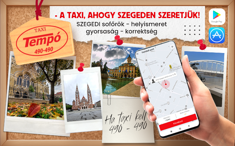 Ha taxi kell, Tempo Taxi! A diszpécserszolgálat éjjel-nappal elérhető, így bármikor hívhatod őket – legyen szó korai reptéri fuvarról, éjszakai hazajutásról vagy sürgős megbízásról. A +36 62 490-490 telefonszámot érdemes elmenteni, vagy letölteni az AppStore-ben és a Google Play áruházban is elérhető Tempo applikációt, hiszen bármikor jól jöhet! Az 1983-ban alapított egyesület büszke arra, hogy szegedi sofőrökkel, szegediekért dolgozik. Jól ismerik a város minden utcáját, kerülőútját és parkolóhelyét – így akkor is célba juttatnak, ha éppen dugó van.