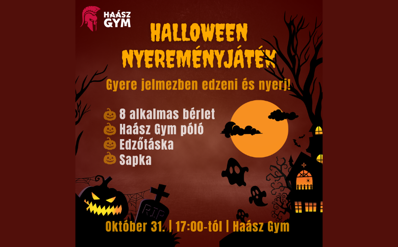 Október 31-én, pénteken 17:00-tól Halloween-üzemmód a Haász Gymben: dobd fel az edzős szetted egy halloweeni kiegészítővel, és máris benne vagy a sorsolásban. A nyeremények között 8 alkalmas bérlet, póló, táska és sapka. Két emeletnyi géppark, erős közösség és igazi halloweeni hangulat vár – ha edzeni jössz, most a kreativitásod is számít. Itt az este, amikor az izzadás mellé jár egy kis borzongás is.