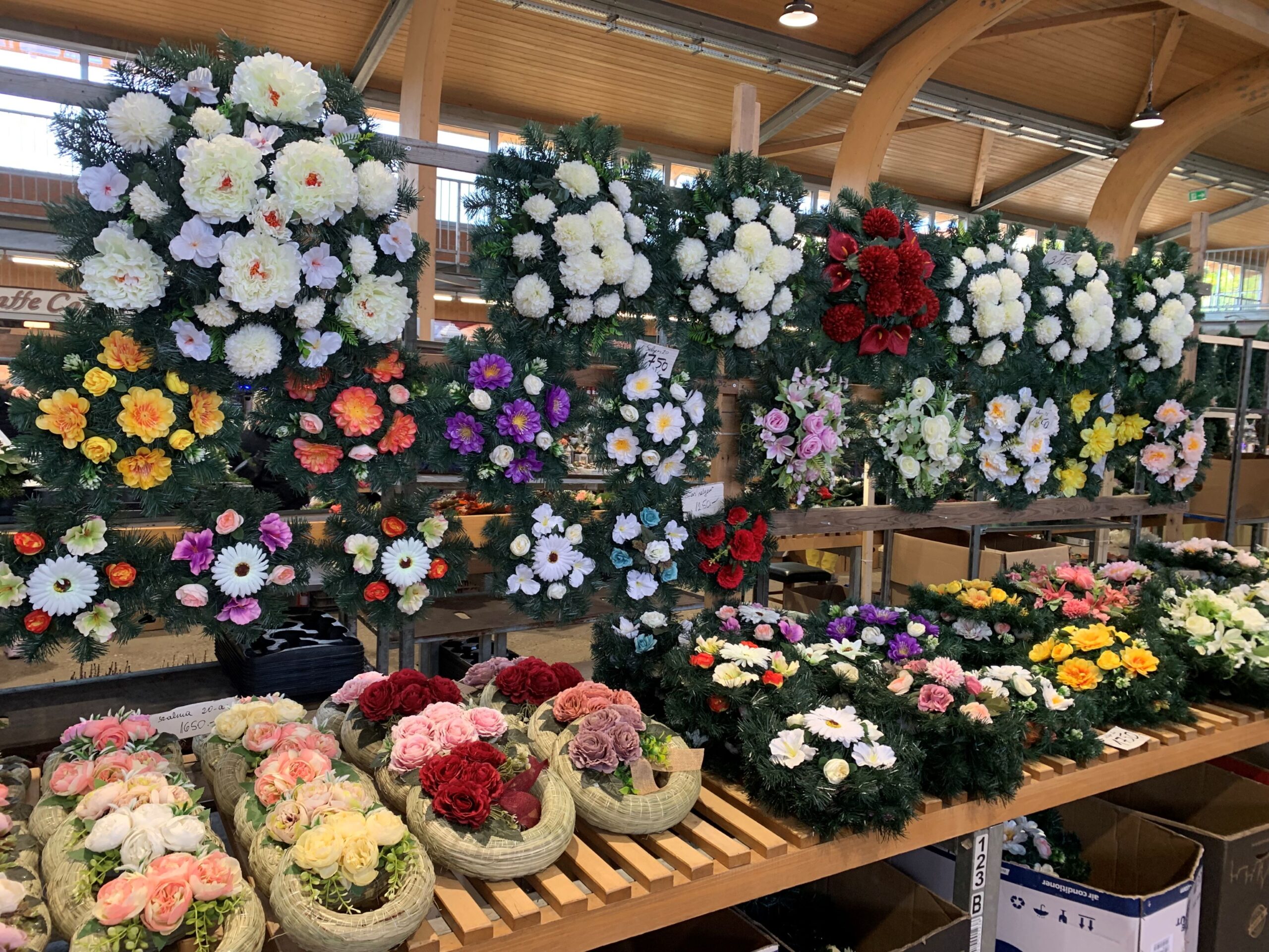- élő virágos díszkoszorúk mérettől függően: 4000-10.000 Ft,
