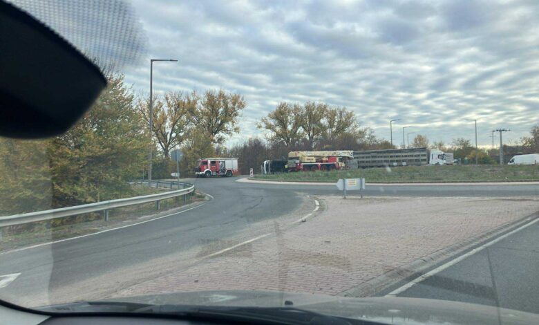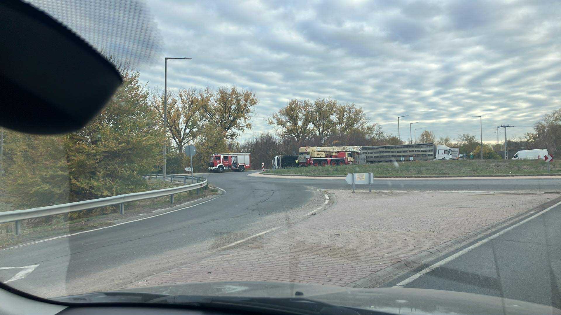 Pénteken dél körül felborult egy kamion a 451-es főút és az 542-es út körforgalmánál, Kiskunfélegyháza térségében, az M5-ös autópálya közelében. Lóri olvasónk beszámolója szerint malacokat szállított a kamion, amiket a tűzoltók menekítettek ki.
