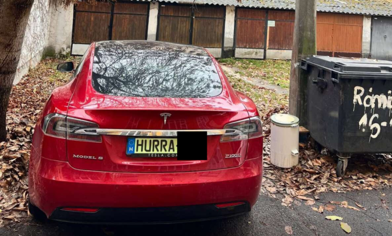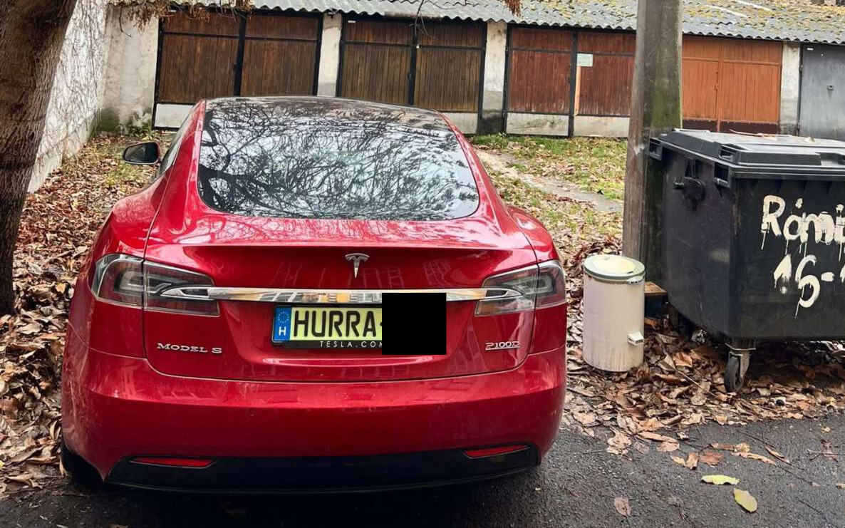 A Szegeden láttam és hallottam Facebook-csoportban tette közzé egy névtelen felhasználó vasárnap délelőtt, hogy ezzel az egyedi rendszámos Teslával a garázsa elé parkoltak.
