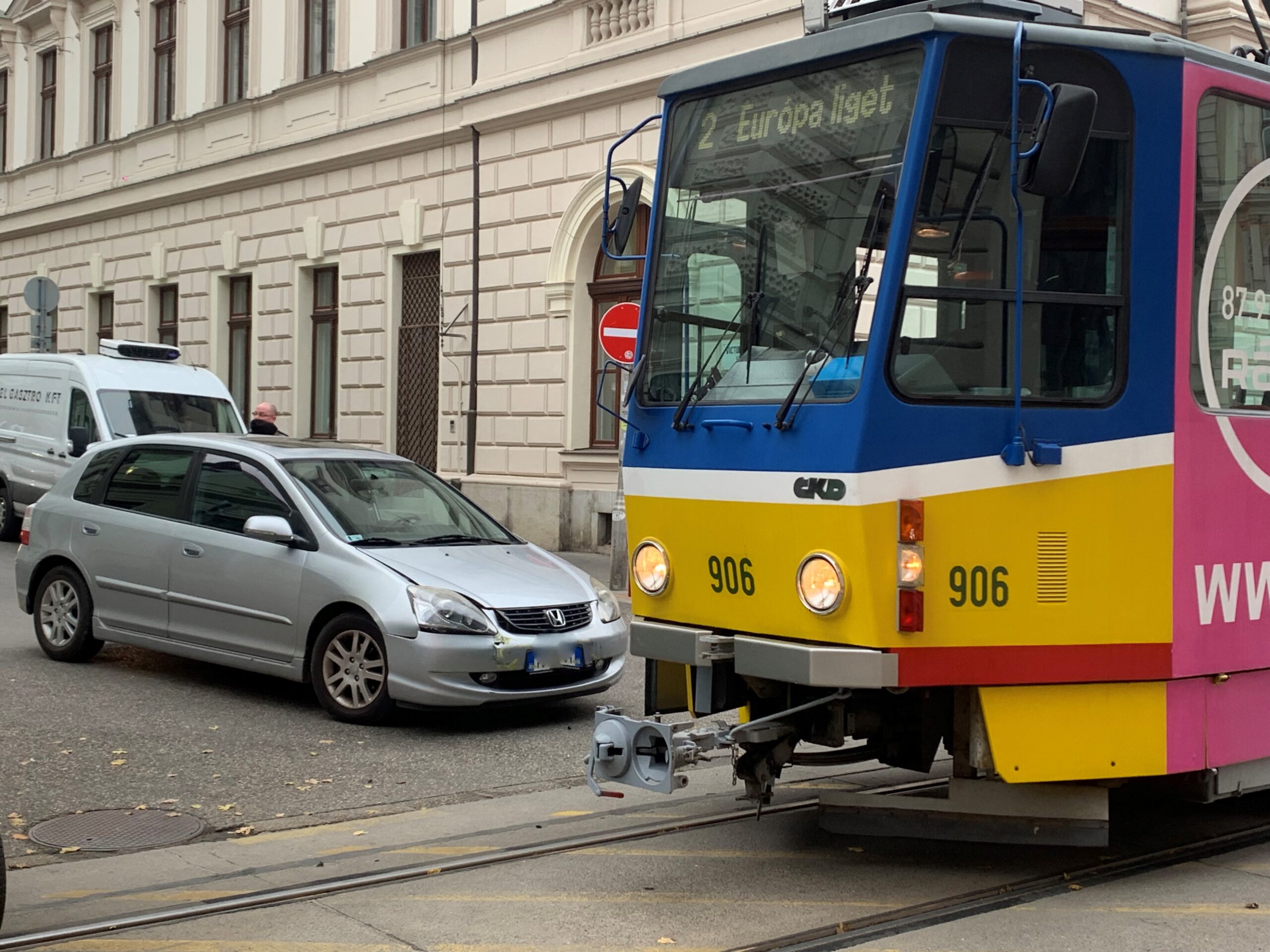 Most történt: villamos ütközött autóval a Kelemen László utcában