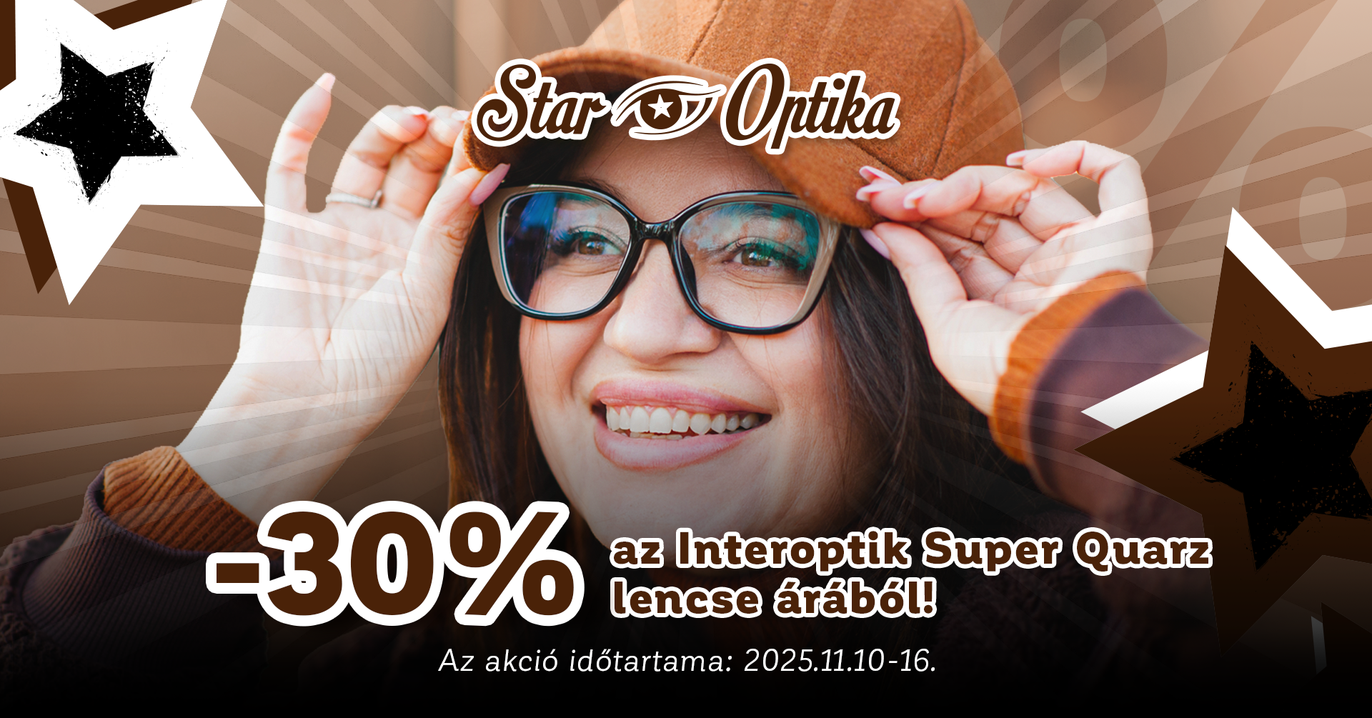 november 10. és 16. között a 30% kedvezménnyel lehet megvásárolni az Interoptik Super Quarz lencsét Újszeged egyetlen optikájában!