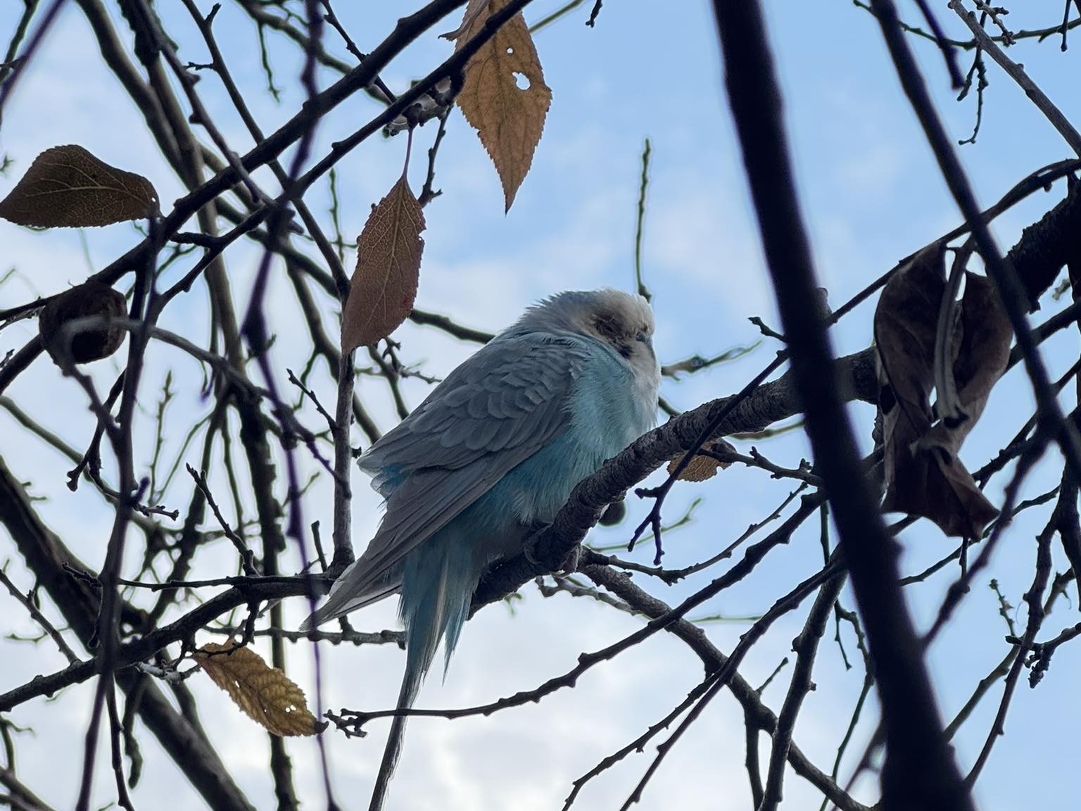 A gyönyörű kék szárnyas megfogása előtt így ücsörgött a fán: