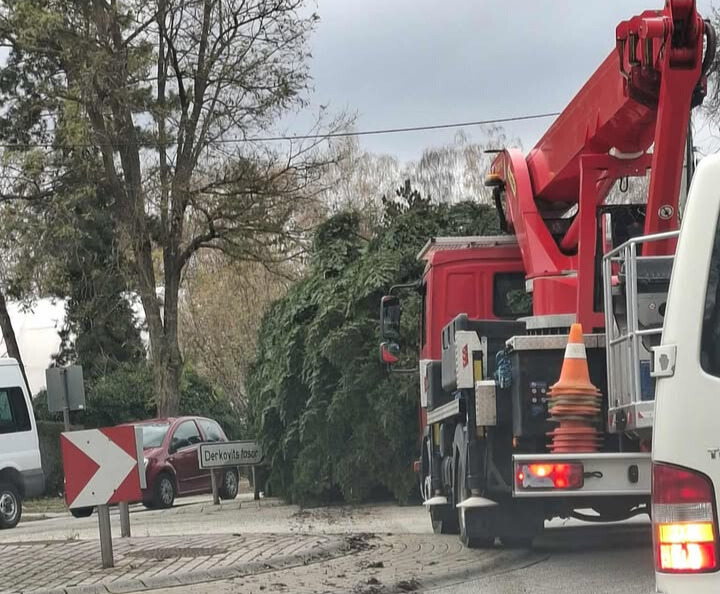 A karácsonyfa megérkezett a Kárász utcára, és hamarosan már a helyén fog tündökölni!